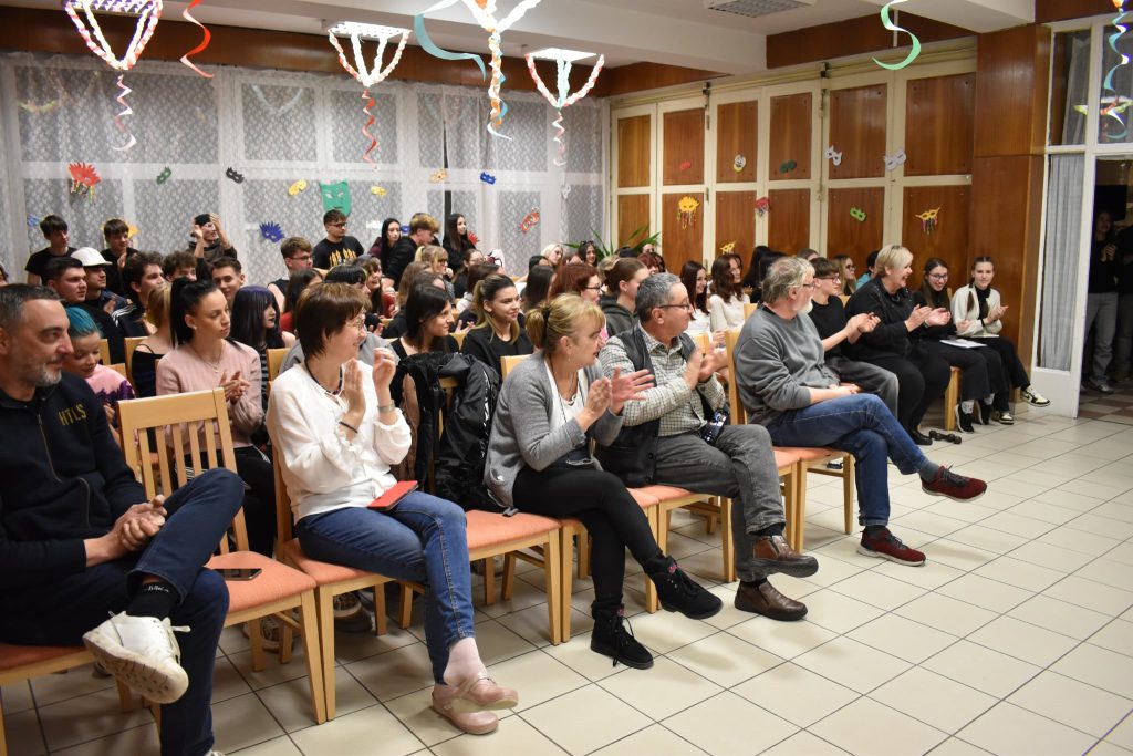 Sorra léptek fel a csoportok. Volt humoros jelenet, zenés-táncos előadás, sőt még rövid paródia is, amely a kollégiumi mindennapokat mutatta be tréfás formában. A közönség hangos tapssal jutalmazta a kreatív és szórakoztató produkciókat.