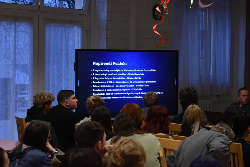 A féléves értékelő kollégiumi gyűlés elérte a célját, a közösség együtt tekintette át az eddigi eredményeket, és új célokat fogalmazott meg a következő időszakra.