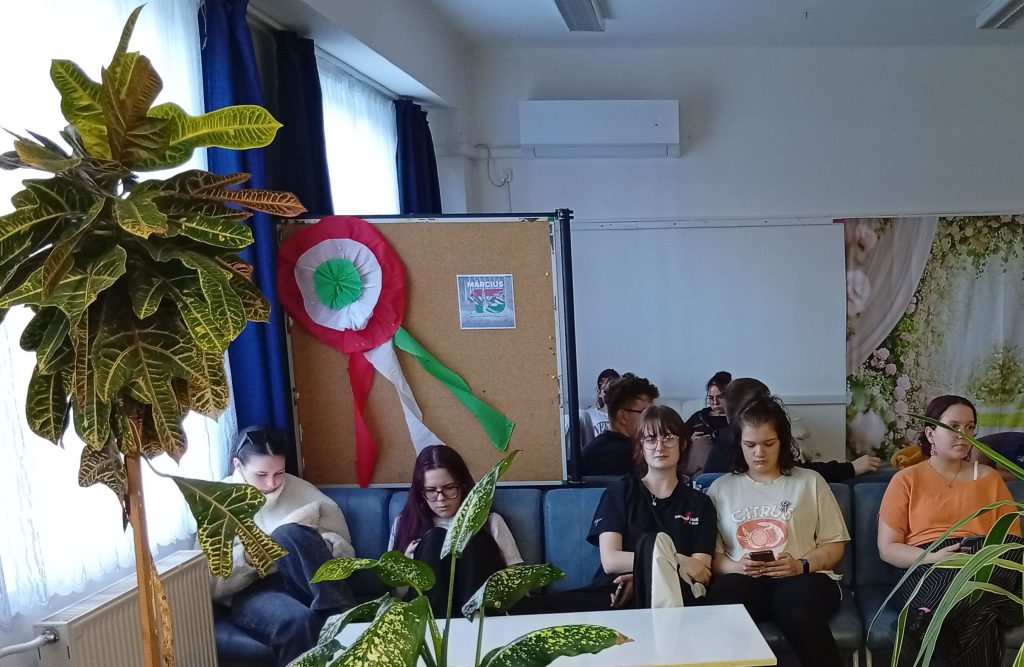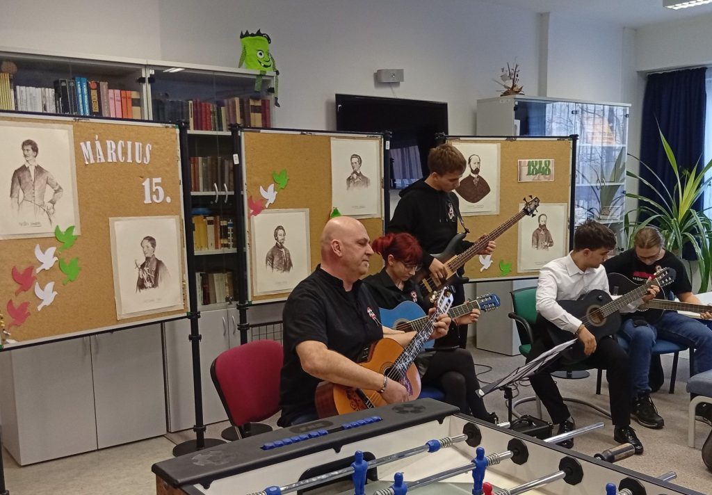 A diákönkormányzat és az ötös csoport segítségével teáztak, pattogatott kukoricáztak a kollégisták. Az 1848-as történésekre zenés műsorral emlékeztünk. A kollégium zenekara Nagy Zoltán Vilmos tanár úr vezetésével a megzenésített Nemzeti dalt adta elő.